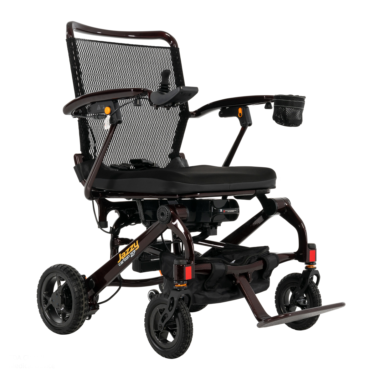 The Jazzy® Carbon 27X is a power wheelchair that folds vertically thanks to its innovative X-frame design.