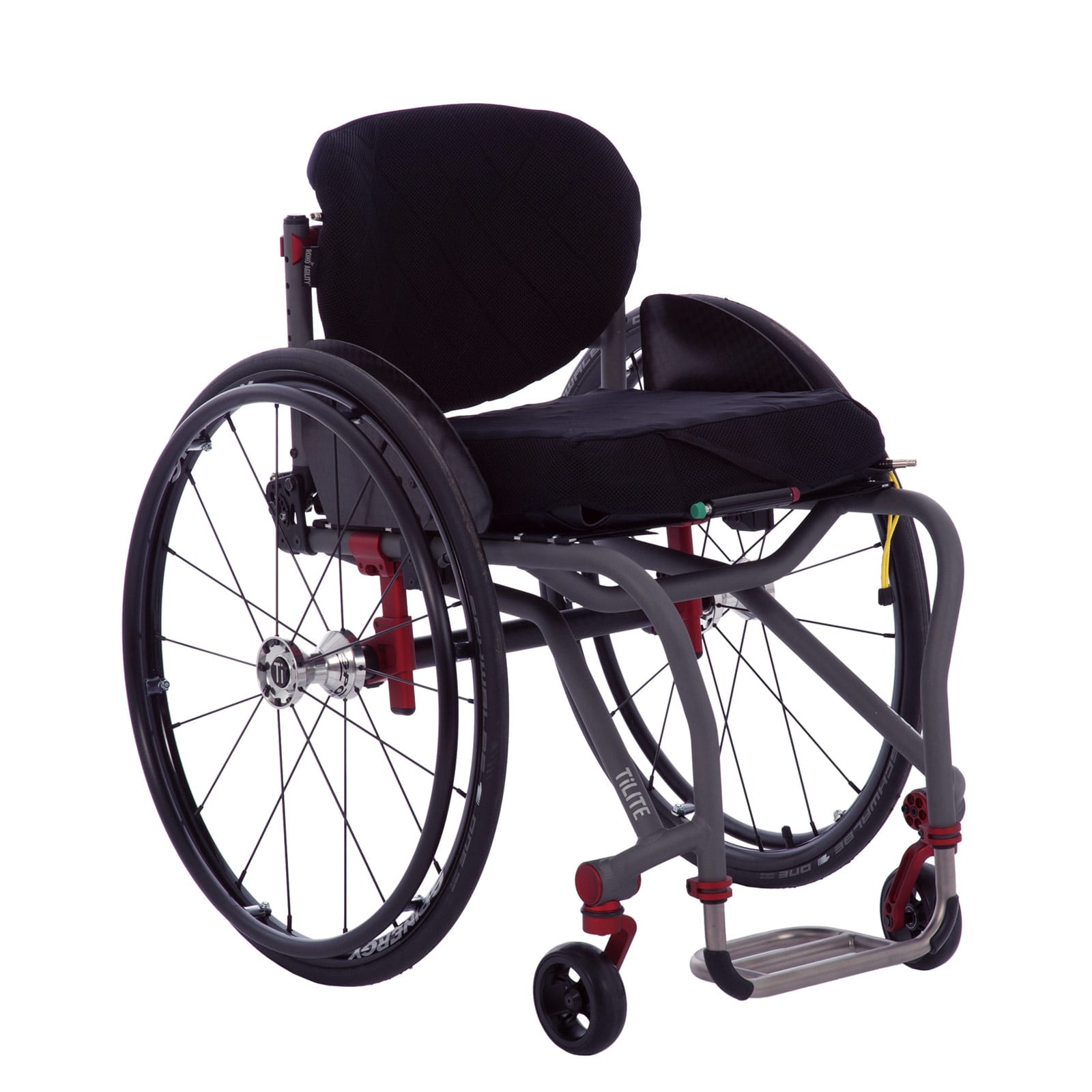 "description": "Aero T\u00a0Innovation\nThe\u00a0Tru-Fit System\u00a0opens up the world of adjustability by incorporating an infinite adjustment mechanism. The Tru-Fit system allows you to fine tune the fit of your chair because you are not limited to a series of pre-set holes. Also, instead of bolting through frame-weakening holes, components clamp directly onto the frame. This eliminates one of the main stress points on today's wheelchairs by reducing the number of holes in the frame.\n\nAdjustable Camber Mount\u00a0incorporates TiLite's Tru-Fit system with up to 3.5\u2033 of rear seat height adjustment.\n\nPatented\u00a0Speedloader Adjustable Front Caster Housing\u00a0quickly and accurately adjusts fork angle in 1\u00b0 increments.\n\nZero Play Camber Plugs\u00a0give a much tighter feel to the chair like sport suspension in a car. CNC machined from billet aluminum to the highest tolerances, they remove any side to side movement from the rear wheels.\n\nTiShaft Back Release Bar\u00a0makes folding and unfolding the backrest easy from any angle.",