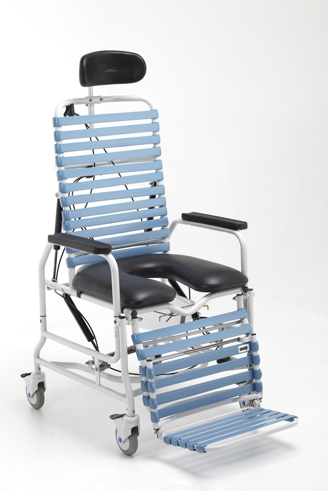 "features": "<ul>\n\t<li>adjustable-length elevating legrest with removable flip down footrest</li>\n\t<li>fixed height swing away, removable arms</li>\n\t<li>sturdy no-rust construction with stainless steel powder coated frame, and stainless steel fasteners and casters</li>\n\t<li>4 way stretch padded urethane foam commode seat (removable)</li>\n\t<li>3 total lock casters and 1 directional locking caster</li>\n\t<li>drainage holes to help\u00a0prevent water from pooling</li>\n\t<li>bedpan with basket (basket slides in and out for easy removal)</li>\n\t<li>Padded Head Rest</li>\n\t<li>400 lb. weight capacity</li>\n</ul>",