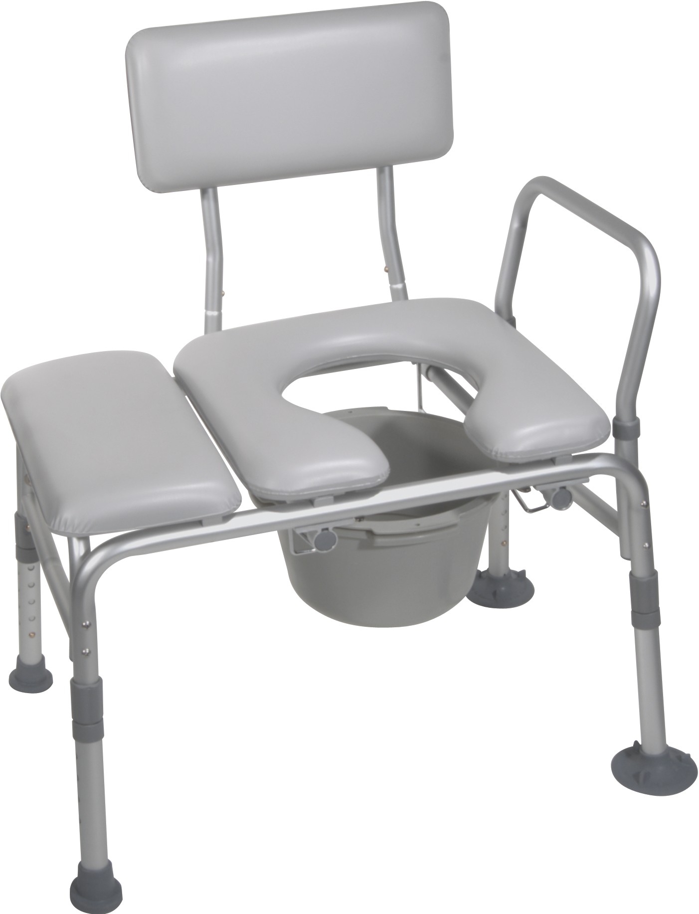 "short_description": "This versatile product from Drive Medical combines a transfer bench and a commode into one. Its comfortable cushioned seat and backrest and 1\" aluminum-frame const",