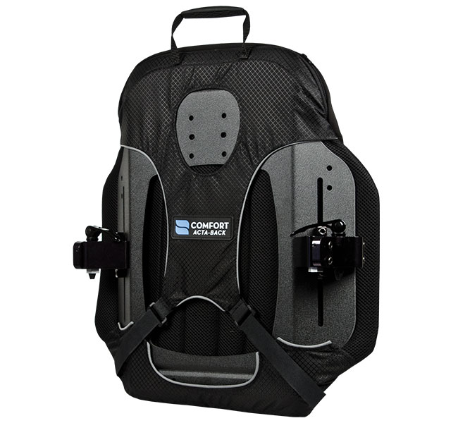 "description": "COMPASS HARDWARE\n\n \tFully adjustable for height, depth, and angle of recline.\n \tRequires only 1.5\" of space on each cane for mounting purposes.\n \tAll adjustments can be made while the user is seated in the wheelchair, eliminating the need for multiple transfers during the fitting process.\n \tQuick-release feature allows backrest to be removed vertically within seconds.\n \tHardware may be installed within minutes and fits 3/4\", 7/8\", and 1\" tubing.\n \tPositive locking feature for angle rotation.\n\nMOLDABLE SUPPORT\nThe Acta-Back features a patented custom moldable center section:\n\n \tA moldable center section allows precise contours for any spinal curvature. This offers increased support and comfort to accommodate lumbar, scoliosis, and kyphosis needs.\n \tNEW: inner top zipper allows moldable stays to be removed - molded - replaced without having to remove the foam & cover from the backrest. All done while the user is seated.\n \tMoldable aluminum stays are offset from the center, removing pressure points from the spine and allowing for more aggressive molding to either side to support a rotated back.\n\n ",
