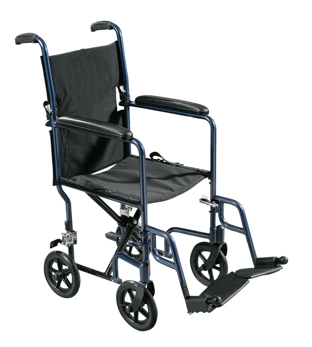 "features": "<ul class=\"listing\">\n \t<li>Aluminum casted back release hinge allows back to fold down for easy storage and transport</li>\n \t<li>Aluminum frame is lightweight and strong</li>\n \t<li>Back folds down for storage and transport</li>\n \t<li>Both 17\" and 19\" come with swing-away footrests</li>\n \t<li>Comes with seat belt for added safety</li>\n \t<li>Composite 8\" wheels are lightweight and maintenance free</li>\n \t<li>Nylon upholstery is comfortable, lightweight and easy to clean</li>\n \t<li>Padded armrests provide additional comfort</li>\n \t<li>Standard rear wheel locks</li>\n \t<li>Weighs only 19 lbs</li>\n</ul>",