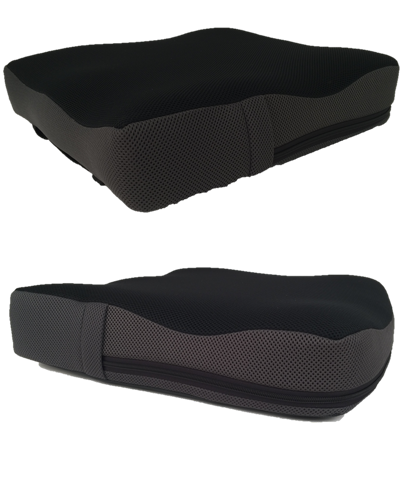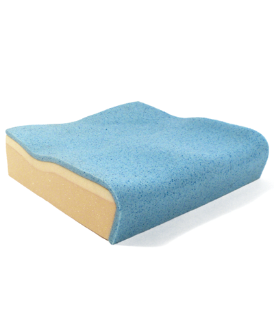 "features": "<h3>Foam:</h3>\n<u>Top Layer:</u> new Blue Visco Gel foam reduces heat build critical to minimize skin integrity issues. Soft density for comfort and immersion. Made with antibacterial properties.\n\n<u>Middle Layer:</u> Medium density Visco foam provides improved support, positioning and immersion.\n\n<u>Bottom Layer:</u> HR contour cut foam for support, stability and durability\n<div id=\"ldesc\">\n<ul>\n \t<li>Pre-ischial support prevents sliding and provides pelvic support</li>\n \t<li>Moderate abductor/adductor contour for mid-line positioning of the femurs</li>\n \t<li>Radius cut at the rear for sacral support and to match contour of modular back supports</li>\n \t<li>Beveled front edge for foot propellers or users who want to sit with a tight front frame angle or who have tight ham strings</li>\n \t<li>Anatomically shaped SPS (Selectively Perforated Softening) that are anatomically positioned to support the Ischial/sacral area to prevent sliding and shear and maintain pelvic positioning</li>\n</ul>\n</div>\n<h3>Cover:</h3>\nOUTER\n<div id=\"ldesc\">\n<ul>\n \t<li>Airmesh cover for comfort & low temperatures</li>\n \t<li>Metallic black mesh front for air exchange & style</li>\n \t<li>TuffTex sides for durability & protection</li>\n \t<li>Textured non-skid bottom with loop Velcro & carry strap</li>\n</ul>\n</div>\nINNER\n<div id=\"ldesc\">\n<ul>\n \t<li>Fluid proof and breathable</li>\n \t<li>Multi-directional stretch fabric for immersion</li>\n \t<li>Wipes clean between washes</li>\n \t<li>Zipper for foam access and protection</li>\n</ul>\n</div>\n<h3>Specifications:</h3>\n<div id=\"ldesc\">\n<ul>\n \t<li>Available Widths: 10\", 12\", 14\", 16\", 18\", 20\"</li>\n \t<li>Available Depths: 12\", 14\", 16\", 18\", 20\"</li>\n \t<li>Height at adductors: 4.25\" (12\" & 14\" models: 3.5\")</li>\n \t<li>Height at abductor: 3.75\" (12\" & 14\" models: 3\")</li>\n \t<li>Height at leg troughs: 3.25\" (12\" & 14\" models: 2\")</li>\n \t<li>Weighty Capacity: 300lbs</li>\n \t<li>Cushion weight (1616): 2.2lbs</li>\n \t<li>Actual cushion width is 0.5\" less than stated to fit 2 sizes of wheelchair</li>\n \t<li>Actual cushion depth is 2\" longer than stated to allow for radius cut</li>\n</ul>\n</div>",