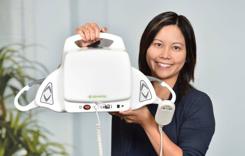 "description": "Safety\nDesigned for safe lifting and transferring in various care settings\nLongevity\nBuilt for a 10-year lifespan with regular maintenance for durability.\nEasy Installation\nSimplified setup for\n\nPeace of mind, reducing risks\nWhether you are a patient or a caregiver, a Savaria Portable Ceiling Lift provides security for lifting and transferring in a home setting. The lift helps prevent the risk of injury to caregivers, including back strains that are common occurrences with manual lifting. Patients can feel peace of mind and security when moving or transferring using the Savaria lift. For some, a Savaria ceiling lift is the solution for leaving the hospital sooner and recovering in the comfort of their home.\n\nOne touch\nYou will know how to use it\n\nWhether you use the hand pendant, or the motor unit controls, you will experience an intuitive design for up and down commands. There are no extraneous bells and whistles to create confusion, or break downs.\n\nFast, even with more weight\nThe powerful system delivers speeds 30% faster than the competition, even when used at higher capacity.\n\nFlexible use\nThe Savaria portable lift can be paired with the Savaria Gantry for semi-permanent use. This is an ideal set up for patient transfer from bed to wheelchair. In locations where a fixed track cannot be installed, such as a condominium or rental property, the portable lift + gantry delivers a compact lifting system for short or longer term use.\n\nSureClip system\nIt\u2019s different for safety\n\nTraditional designs use a clip that opens inward. While that makes the clip easy push, it also introduces a common miss-use issue whereby the caregiver mistakenly believes the sling has been securely fastened when in fact the sling loop is not inside the clip. The Savaria SureClip system opens outward to create a more foolproof securement of sling to lift.\n\n ",