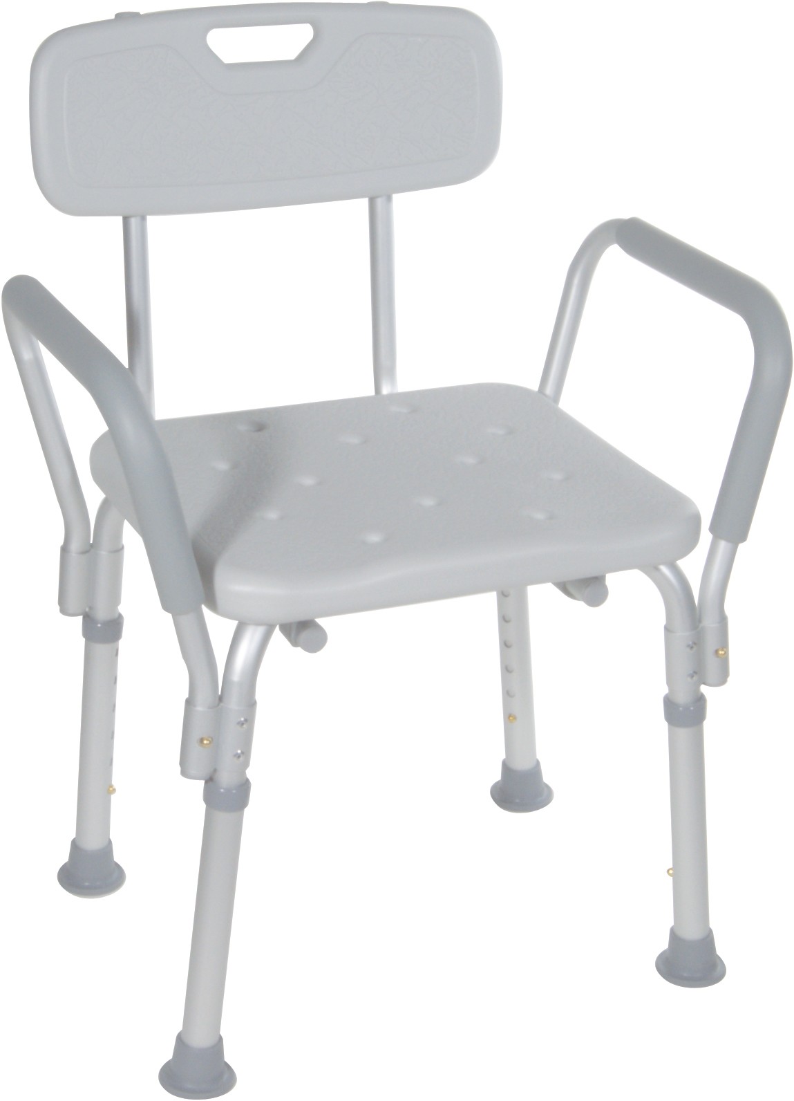 "description": "Aluminum frame is lightweight, durable and corrosion proof\n \tBlow molded bench provides comfort and strength\n \tDrainage holes in bench reduce slipping\n \tLegs are height adjustable to accommodate large and small individuals\n \tRemovable padded armrests provide comfort and added security\n \tTool free assembly\n\n\n\n\n\nOutside Legs\n17.75 (W) x 19.25 (D)\n\n\nSeat Width\n16\"\n\n\nSeat Depth\n14.5\", 16.25\"\n\n\nSeat Height\n16\" - 21\"\n\n\nWeight (-1 | -2)\n9.75 lbs. | 19 lbs.\n\n\nCarton Shipping Weight (-1 | -2)\n10 lbs. | 21 lbs.\n\n\nWeight Limit\n300 lbs.\n\n\nWarranty\nLimited Lifetime",