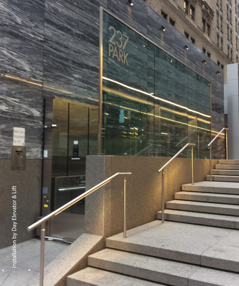 "features": "<strong>Flexible design and feature options</strong>: In stainless steel or painted in a creative optional color, this lift will make a distinct addition to any commercial lobby.\n<strong>Quiet and reliable hydraulic drive</strong>: Smooth start, stop and overall ride that works dependably.\n<strong>Machine roomless</strong>: Enclosed drive system means no machine room is required, making the installation process easier.\n<strong>Other standard features</strong>: 36\" x 54\" standard platform, continuous pressure button operation, modular rail construction for easy construction, handrail, automatic battery recharging system.\n<strong>Standard finishes</strong>: With half-inch structural tempered glass and no visible frame, this lift is the ultimate statement for creating barrier-free access in commercial applications. Tower is finished in primer grey. The framed Prestige version has frameless glass doors and 3\" x 3\" structural tubing in each corner. The structure underneath the stainless steel cladding is finished in primer gray or painted in the optional color of the lift.\n<strong>Safety features</strong>: Emergency stop button on car, non-skid platform, manual lowering device, 42 1/8\" (1070 mm) side panels, keyed car buttons and keyed call stations, safety brake, door locks.\n<strong>Warranty</strong>: 36 months parts.",