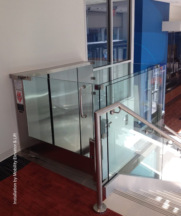 "mhhc_features": "<strong>Flexible design and feature options</strong>: In stainless steel or painted in a creative optional color, this lift will make a distinct addition to any commercial lobby.\n<strong>Quiet and reliable hydraulic drive</strong>: Smooth start, stop and overall ride that works dependably.\n<strong>Machine roomless</strong>: Enclosed drive system means no machine room is required, making the installation process easier.\n<strong>Other standard features</strong>: 36\" x 54\" standard platform, continuous pressure button operation, modular rail construction for easy construction, handrail, automatic battery recharging system.\n<strong>Standard finishes</strong>: With half-inch structural tempered glass and no visible frame, this lift is the ultimate statement for creating barrier-free access in commercial applications. Tower is finished in primer grey. The framed Prestige version has frameless glass doors and 3\" x 3\" structural tubing in each corner. The structure underneath the stainless steel cladding is finished in primer gray or painted in the optional color of the lift.\n<strong>Safety features</strong>: Emergency stop button on car, non-skid platform, manual lowering device, 42 1/8\" (1070 mm) side panels, keyed car buttons and keyed call stations, safety brake, door locks.\n<strong>Warranty</strong>: 36 months parts.",