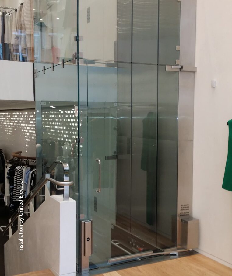 "description": "Flexible design and feature options: In stainless steel or painted in a creative optional color, this lift will make a distinct addition to any commercial lobby.\nQuiet and reliable hydraulic drive: Smooth start, stop and overall ride that works dependably.\nMachine roomless: Enclosed drive system means no machine room is required, making the installation process easier.\nOther standard features: 36\" x 54\" standard platform, continuous pressure button operation, modular rail construction for easy construction, handrail, automatic battery recharging system.\nStandard finishes: With half-inch structural tempered glass and no visible frame, this lift is the ultimate statement for creating barrier-free access in commercial applications. Tower is finished in primer grey. The framed Prestige version has frameless glass doors and 3\" x 3\" structural tubing in each corner. The structure underneath the stainless steel cladding is finished in primer gray or painted in the optional color of the lift.\nSafety features: Emergency stop button on car, non-skid platform, manual lowering device, 42 1/8\" (1070 mm) side panels, keyed car buttons and keyed call stations, safety brake, door locks.\nWarranty: 36 months parts.\n\nApplications: Residential, commercial, indoors, outdoors\nStandard capacity: 750 lb (340 kg)\nMaximum travel distance: 6' (1.8 m)\nNominal speed: 20 ft/min (0.1 m/s)\nDrive/motor: 2:1 chain hydraulic, 3 hp (2.2 kW), gear-type motor\nMinimum pit: 3\" (76.2 mm)\nPower supply: 120 VAC, 20 amp, single phase, 60 Hz",