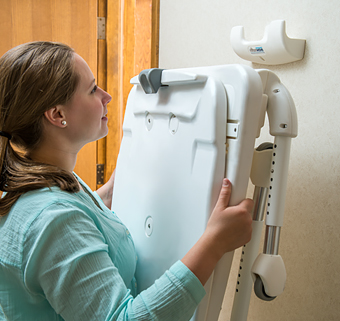 "description": "The ingenious tub transfer base is ideal for the large or heavy user who needs an over-the-tub shower. It's much more gentle on your back, too!With the tub transfer base you start in the position farthest out of the tub and lower the client into the chair. Then you roll back over the tub and set the brakes. As the upper portion with the bath chair is rotated 90\u00b0 it moves approximately one foot back over the tub in one smooth motion.The tub transfer base will fit most bath tubs up to 20\" high by adjusting the leg length to clear the edge of the tub. With the Rifton tub transfer base you can perform healthy transfers \u2014 either manually or with a mechanical lift \u2014 without crowding your bathroom with permanently mounted equipment.Rifton's folding, storable tub transfer base makes it possible for everyone in the family to still use the tub. When you are finished just remove the base from the tub, fold the legs, and hang it on the wall hook provided.",